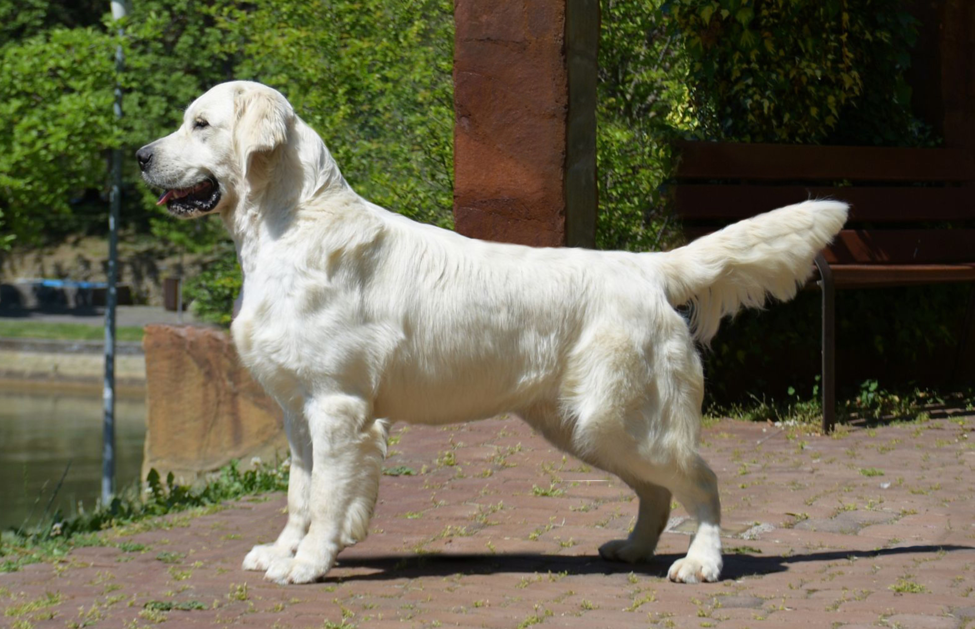 Enzo is roughly 75lbs to 80lbs with a very thick white-cream coat. He has a beautiful, blocky, robust head with a nice square muzzle and huge jowls. We are also proud to announce Enzo has passed all of his Certification tests on Hips, Elbows, Eyes & Heart. He has also been Genetically Tested by Paw Print Genetics. All of his test results are shown below.